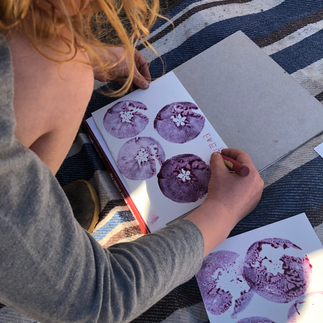 Stars around us everywhere! We discovered the magic of slicing an apple to find the stars inside, and made apple star stamps with our homemade blackberry ink from earlier in the fall.