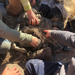 The Saplings studied words starting with the letter A this week: Apples and Acorns! We all worked hard to grind up the acorns we have been cracking for the past several weeks into a beautiful flour, to be taken home to leech (the process of removing the tannins to make them edible). We will bring the leeched acorn flour back to school later this month to make acorn cakes over the fire. Teacher Sarah brought her grain grinder and set it up so everyone could take a turn grinding the acorns.