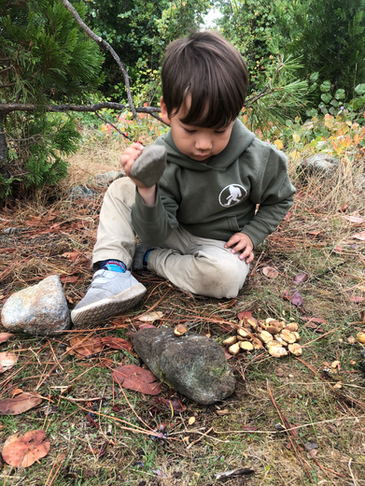 It's an abundant acorn year! We've all been enjoying harvesting and cracking acorns to get ready for one of our favorite days at forest school: acorn pancake day! Acorn has been a staple food for people all over the world for milennia, so at Earthwise we love to build this relationship that humans have always had with oak trees as an important food source.